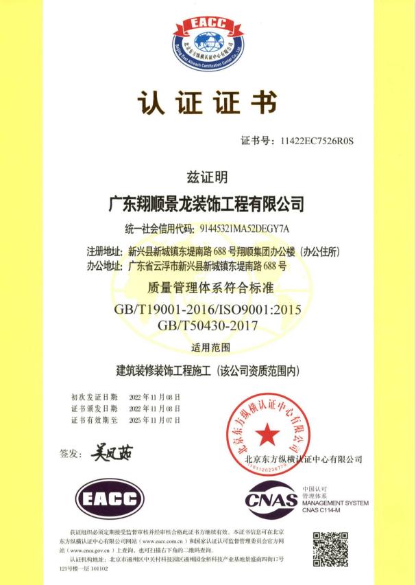 在審核認證過程中,專家組一行通過原始資料查閱、相關(guān)人員詢談、施工現(xiàn)場考察等方式,分別對公司項目及職能部門的質(zhì)量管理體系、環(huán)境管理體系、職業(yè)健康安全管理體系進行了全過程、全方位仔細而嚴格的審核。經(jīng)審核,評審組對公司的體系運行給予了高度評價,對體系建立的有效性給予了充分肯定,同時也提出了中肯的改進建議。