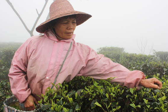 3月18日,象窩茶場大霧漫天,能見度極低,身處茶場如同身在仙境。也就在今天,茶農們正式開始了今年第一批春茶的采摘工作。一大早,采茶阿姨們就挎著背簍來到自己分管的區域開始采茶。