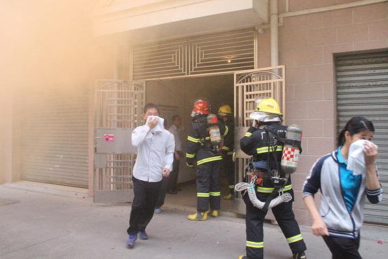 消防演練假設翔順二區25幢某業戶發生火災,監控人員獲悉后第一時間向上反饋并報火警,物業公司按突發事件處理程序組織人員進行迅速撲救。縣消防大隊官兵趕赴現場,控制火情,并指導物業安保人員對樓層住戶進行有序疏散,搶救出被困人員。