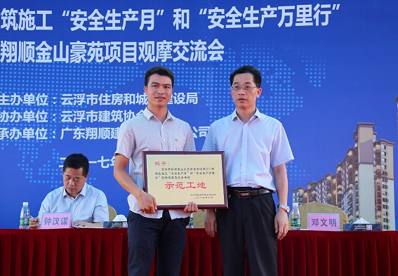 觀摩活動上,云浮市住建局還授予云浮市翔順金山豪苑項(xiàng)目為云浮市2017年建筑施工“安全生產(chǎn)月”和“安全生產(chǎn)萬里行”現(xiàn)場觀摩交流會活動示范工地。