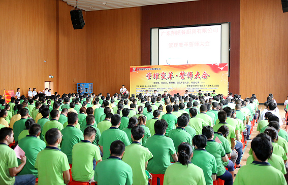 多功能廳里,那一句句響亮的錚錚誓言,吹響了翔順餐廚具公司管理變革的號角。