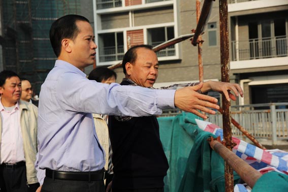 在考察筠州花園時(shí),看見小區(qū)南大門正在加緊施工,出入口的門廊外貌已見雛形,江壯宏駐足傾聽崔總介紹施工情況。他鼓勵(lì)翔順切切實(shí)實(shí)做好筠州花園的建設(shè)工作,為新興縣人民安居樂業(yè)造福。