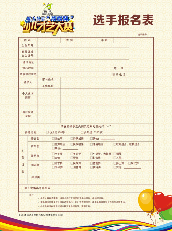 報名條件:參賽選手年齡段在3-13歲,性別不限,才藝不限,憑身份證或戶口簿報名。