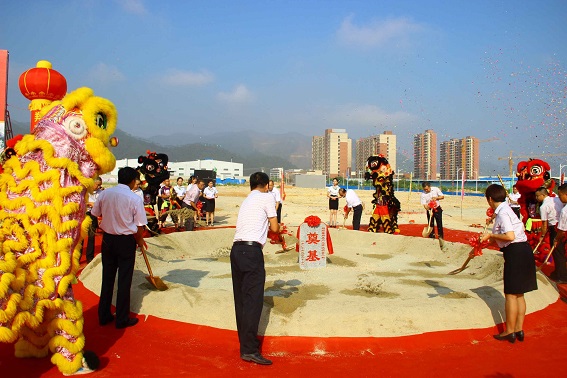 8點30分,奠基儀式正式開始。翔順餐廚具公司總經理鄺玉首先為整個項目作詳細介紹;緊接著,縣政府及集團公司、餐廚具公司相關領導為醒獅點睛,并為給奠基石培土。整個活動流程順暢而精彩,莊重而喜慶。