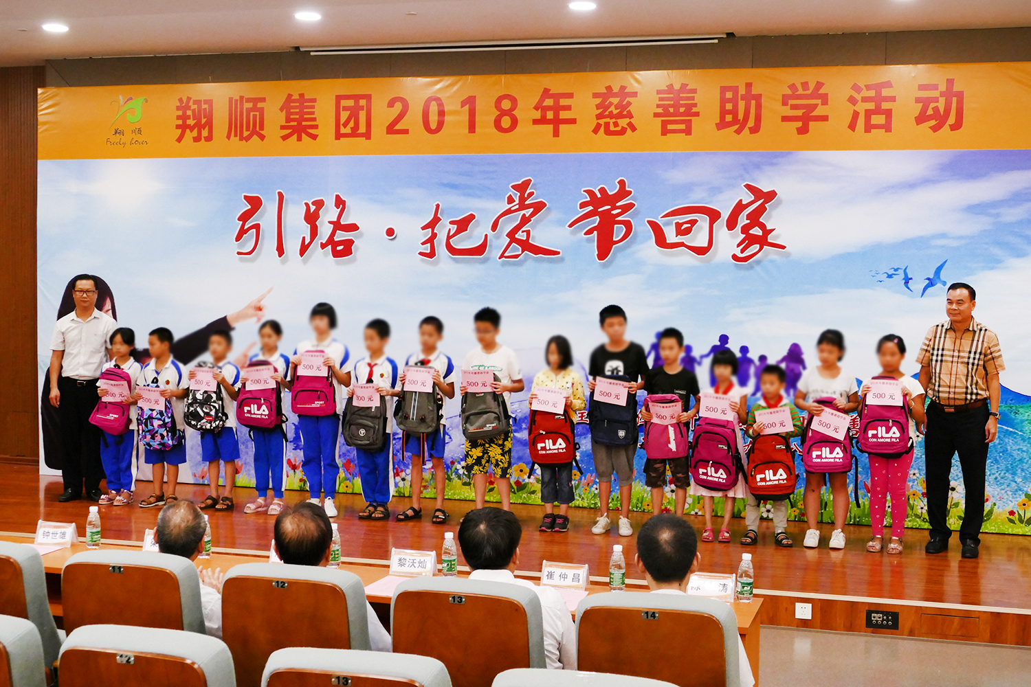 今年,翔順集團繼續捐資30萬元資助600名貧困學子,鼓勵和幫助他們完成學業。翔順集團常務副總裁鐘世雄在儀式上致辭。鐘總感謝社會各界給予翔順集團機會,使翔順集團得以連續六年成為慈善助學活動的資助單位。鐘總表示,6年來,翔順集團一如既往地支持學子們,目的就是希望,通過資助學習費用等方式,幫助家庭困難的學生完成學業。鐘總鼓勵學子們克服困難,自強不息,努力學習,心懷感恩,學成以后回饋社會!