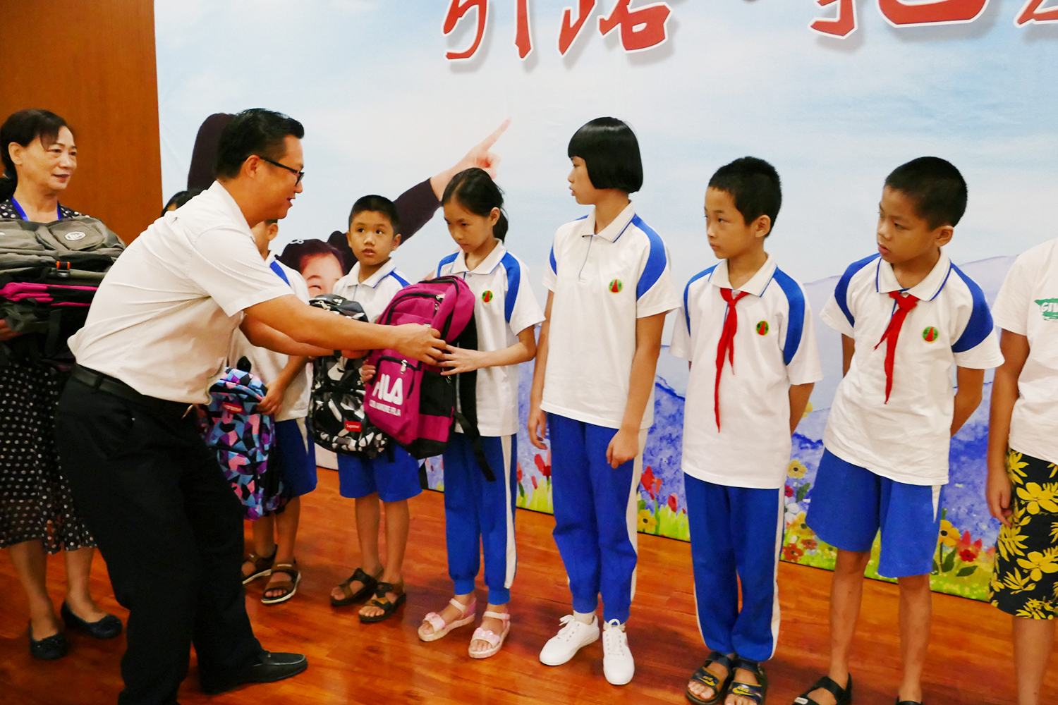 儀式上,梁國華、陳啟雄、黎沃燦、謝玉鳴、鐘世雄、潘錦基、鄺紹榮、陳濤等與會領導為孩子們頒發學習用品及助學金,并與孩子們親切合影,以示鼓勵。