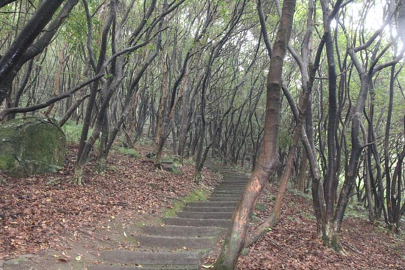 已進入秋天,山上氣溫仍較高。走在象窩山的石階上,拾級而上,四周都是高大的樹木,郁郁蔥蔥、清幽雅靜,沒有受到外面氣溫的影響,依然涼爽宜人。不時還能聽見小鳥清脆的叫聲,幸運的話還能遇到幾只可愛的小松鼠。