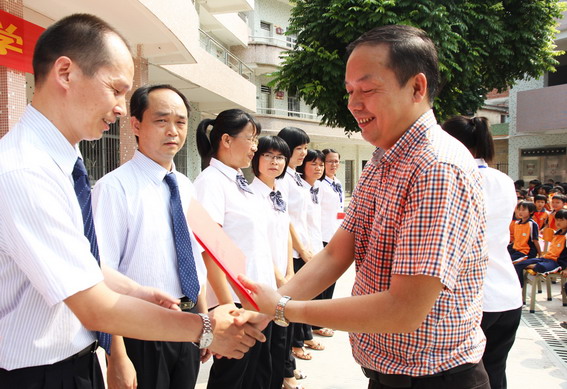 9月25日,學校的獎教獎學活動隆重舉行。縣教育局副局長黎開云,翔順集團副總裁鐘世雄、總裁夫人蘇洪有、行政副總經理陳錦嫦等領導及學校426名師生參加儀式。