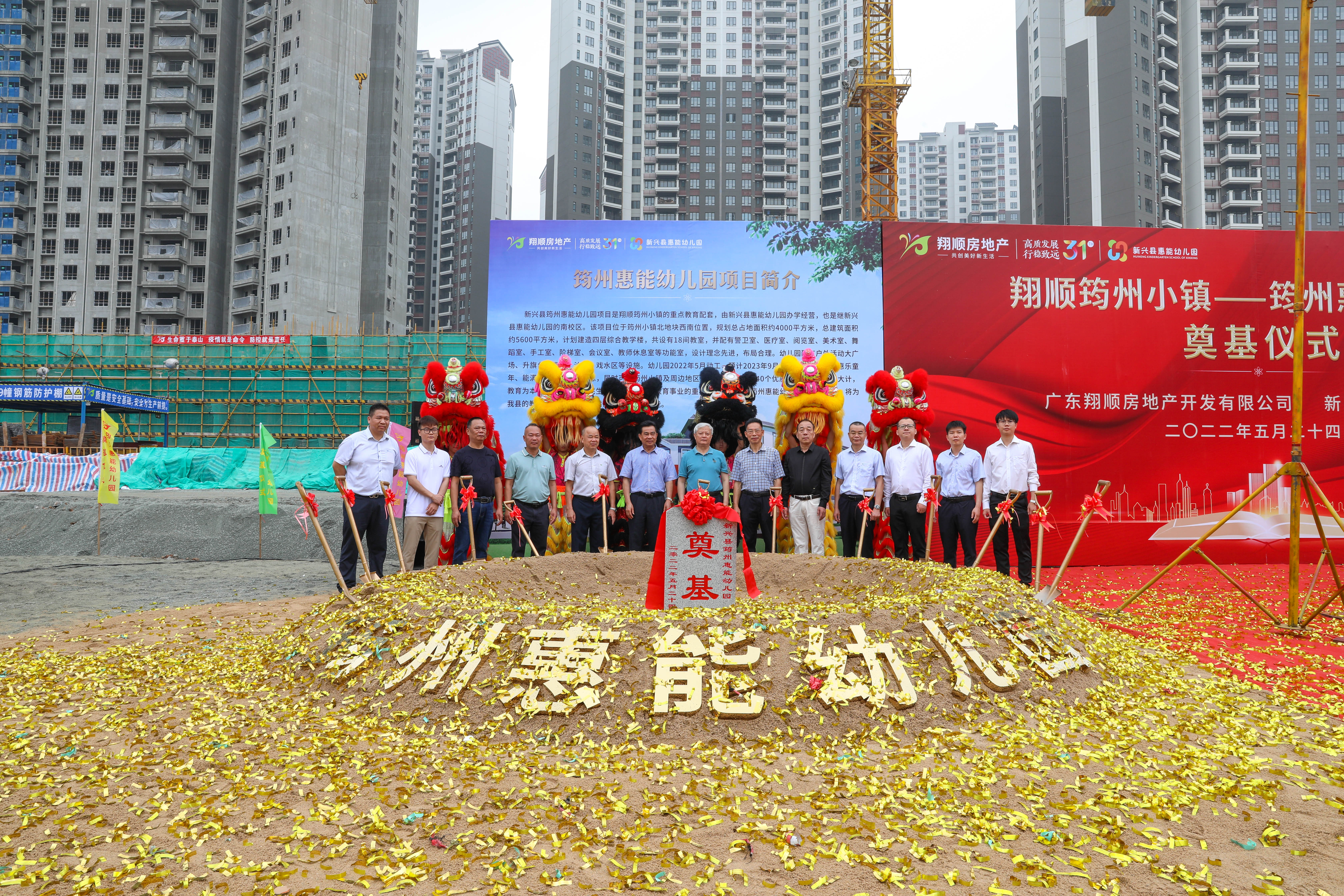 5月24日上午,備受關注的翔順筠州小鎮——筠州惠能幼兒園工程奠基儀式順利舉行。翔順控股集團董事長崔健平、翔順控股集團副總裁鄺紹榮、翔順房地產公司總經理葉子棋、翔順物業公司總經理黃立志,以及新興縣惠能幼兒園相關領導和嘉賓蒞臨奠基儀式現場,共同見證這別具意義的時刻。