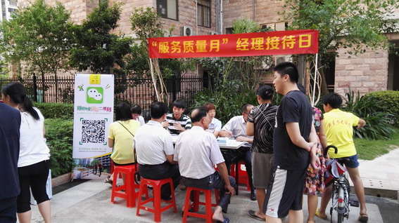 為了切實幫助業主解決問題,找到小區管理中存在的不足,物業公司分別于7月30日、8月9日、8月15日三天,在翔順花園二區、三區及筠州花園一區開展了別出心裁的“經理接待日”活動。物業公司總經辦成員黃立志、黎耀基、蘇國英等帶領各部門負責人現場接待業主,傾聽業主心聲,為業主解疑。