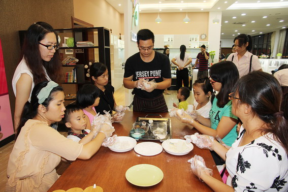 9月23日晚,翔順餐廚具體驗館里上演了一場歡樂的親子DIY冰皮月餅活動,不少市民帶著自己的寶寶前來體驗,現場氣氛活躍。