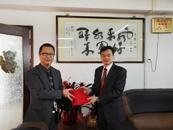 2月8日大年初一,集團高層領導慰問春節期間仍然堅守工作崗位的值班員工,感謝他們愛崗敬業、默默奉獻的精神。(圖為集團副總裁鐘世雄(左)向花園酒店總經理崔秀山派發值班員工利是)