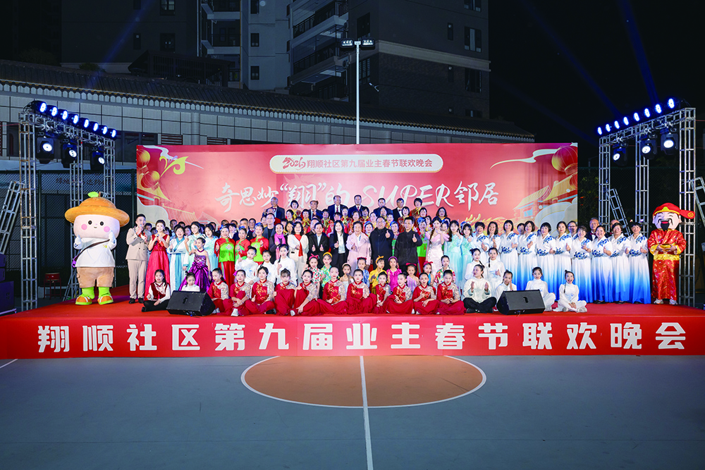 2月7日晚,翔順筠州小鎮(zhèn)籃球場上燈籠高掛、福字盈門,在滿場笑語與璀璨燈光中,“奇思妙‘翔’的super鄰居——2026年翔順社區(qū)第九屆業(yè)主春節(jié)聯(lián)歡晚會”如約登場。這場一年一度的社區(qū)“新春大戲”,再次將鄰里歡聚的熱情推向高潮。新興縣政協(xié)原主席、新興縣老干部藝術團團長周冰容,新興縣文廣旅體局黨組成員、新興縣體育事務中心主任、中國音樂家協(xié)會會員盤偉光,翔順控股集團黨委書記、工會主席陳錦嫦,集團地產(chǎn)事業(yè)部副總裁梁錦基出席了本次盛會。