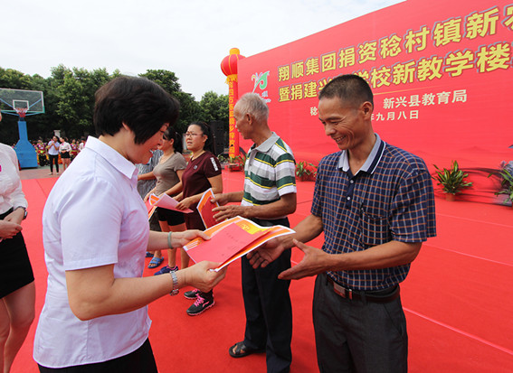 在本次翔順集團捐資稔村鎮新農村建設暨捐建興育學校新教學樓奠基儀式上,翔順集團還聯合興育學校,為上一學期教學成績優秀的師生頒獎,頒發的獎金5萬元,獲獎教師人均獎金1300多元,學生最高的也拿到了1100元。