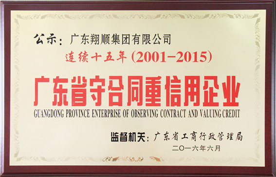 近日,記者從縣工商局市場股了解到,翔順集團及下屬9家公司再次全部獲得“廣東省守合同重信用企業”榮譽稱號。據悉,這已經是翔順集團連續15年獲得“守重”榮譽。