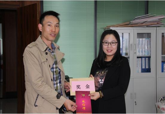 12月6日上午,集團人力資源中心副總經(jīng)理陳濤為第一位“金點子”提議者——建筑公司執(zhí)法部標準員高宇航頒發(fā)獎金和感謝信,表達了對其合理化建議的褒獎和肯定。