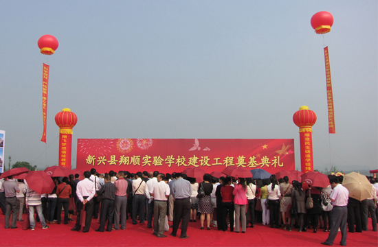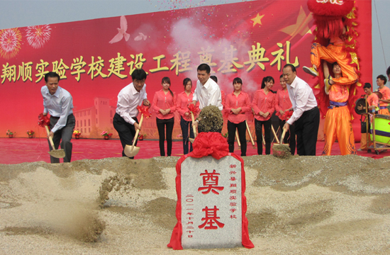 10月20日,由翔順集團獨家捐資3000萬元的翔順實驗學校項目奠基儀式在縣城北翔順實驗學校地塊(縣氣象局旁)隆重舉行。活動當日,市委常委、宣傳部部長,縣委書記、縣人大主任吳偉鵬,縣委副書記、縣長江壯宏,縣直有關單位和鎮黨委政府主要領導,全縣中小學校長、教師代表及翔順集團相關領導共300多人出席了奠基典禮。慶典儀式由縣教育局局長麥樹清主持。