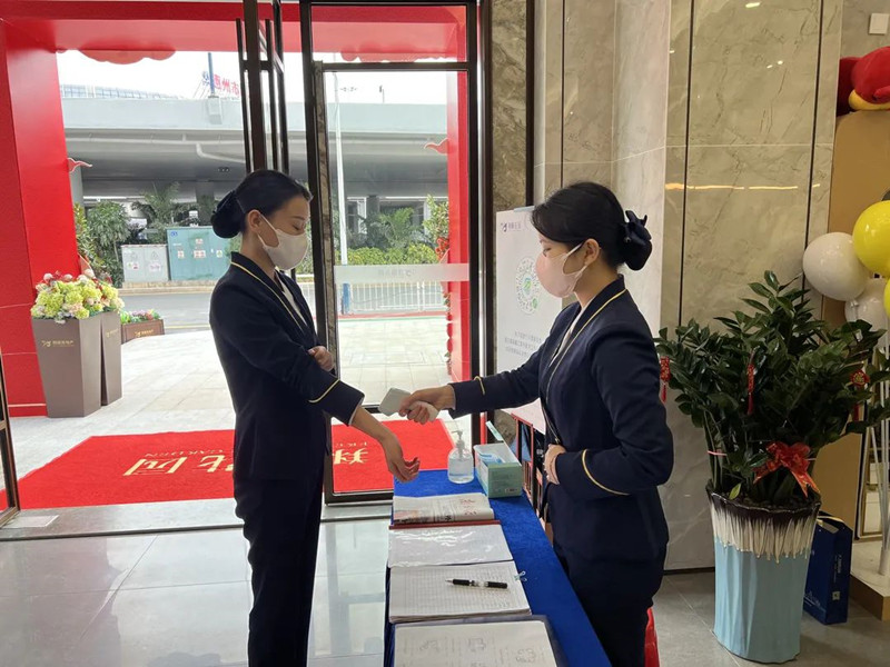 關(guān)愛員工,加強防護。每日上崗前測量體溫、佩戴口罩,員工健康是守護社區(qū)健康的前提。