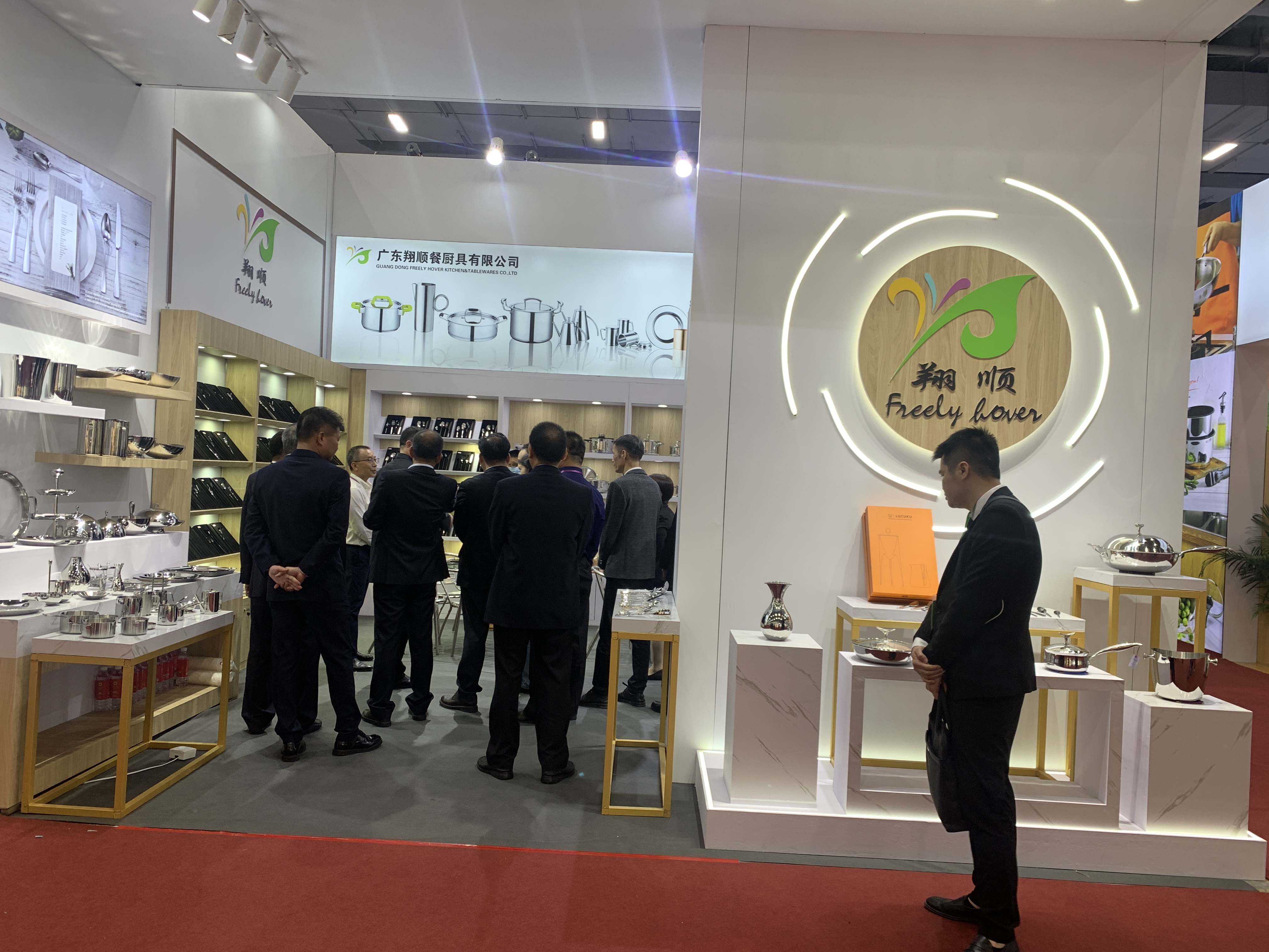 牽動著客商們的心,讓他們走進翔順餐廚具展位的,不單單是鼎壺。有來自德國的客商被“鯨魚王”系列產品吸引,詢問品牌故事;有香港客商鐘情于兩種不同的鍋,欣然接受營銷團隊提出的“鍋蓋+鍋身”DIY方案,爽快提出本周六到廠區拜訪;有來自迪拜的客商多次來訪展位,對他們的目標餐具進一步鎖定與深入商討;還有許多來自不同國家的客商們,都對翔順餐廚具的產品展露出極大的興趣,具有巨大的開發潛力。營銷部在馬小燕和管理班子的帶領下,做好分工合作,用專業和真誠的服務迎接每一位客商。