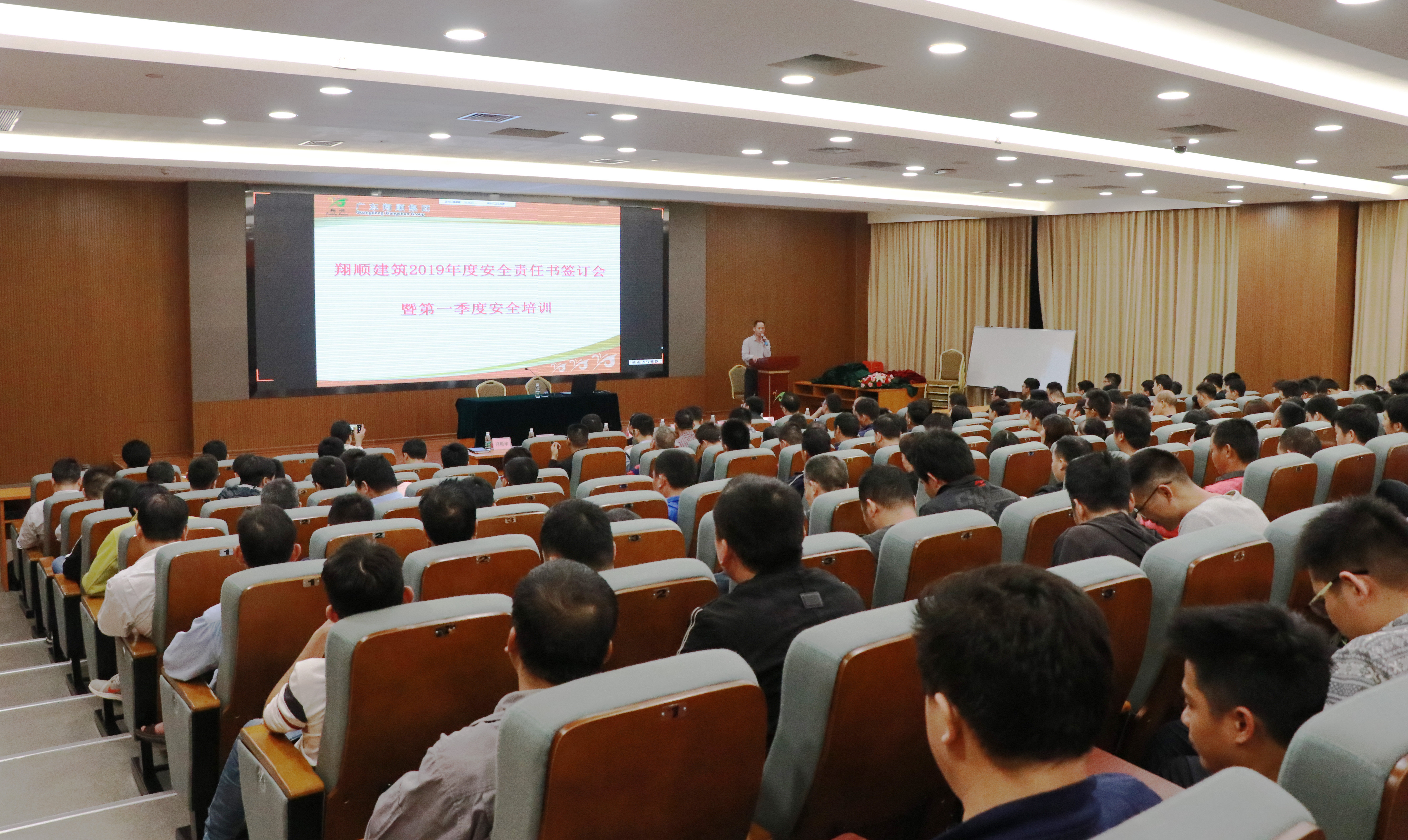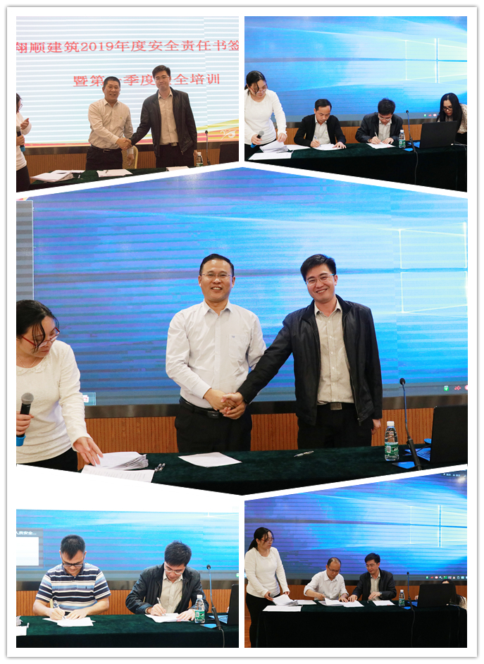 為了貫徹落實公司的發展規劃,強化安全管理,健全安全制度,進一步明確安全生產管理職責,確保2019年度公司各項安全生產工作順利開展,確保全年無安全生產責任事故,3月27日晚,翔順建筑公司舉行2019年度安全責任狀簽訂儀式暨第一季度安全培訓會議。