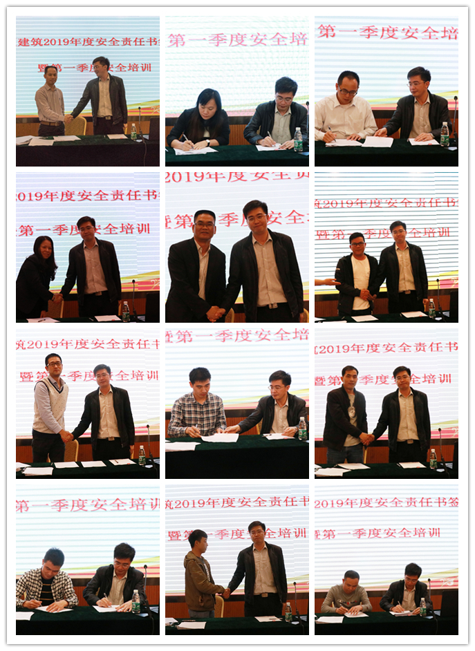本次安全責任書簽訂儀式及第一季度安全培訓會,在全建筑公司上下取得了良好的效果,提高了全員的安全生產意識,進一步增強了各級安全管理人員的履職責任心。今后要繼續深耕安全管理,努力抓好各項安全生產工作,達到以月促季,以季促年,確保公司全年安全生產目標實現,平安、順利地完成2019年各項安全生產工作任務。